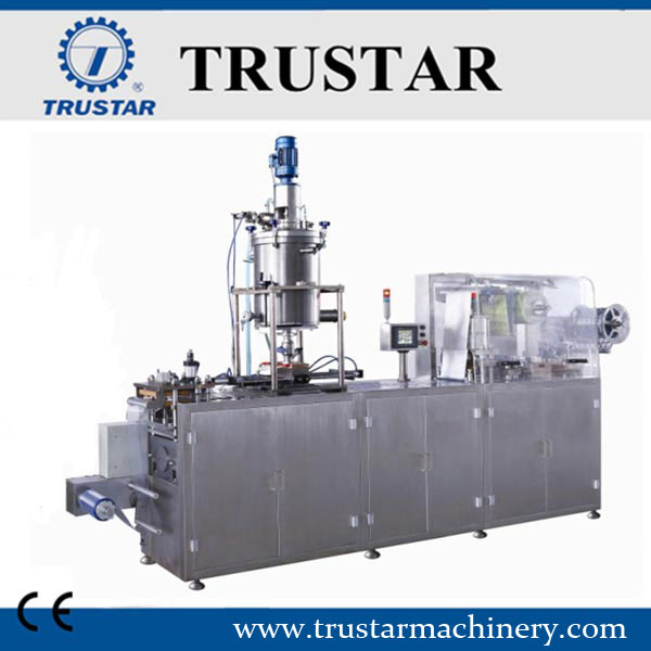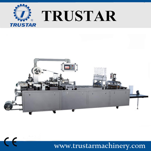 La máquina es adecuada para cápsulas, tabletas, píldoras de miel grandes, dulces, líquidos, pastas, jeringas, así como para envases de Al-plástico de forma irregular, compuesto de papel y plástico y sellado de Al-Al en farmacia, atención médica, alimentos, cosméticos.