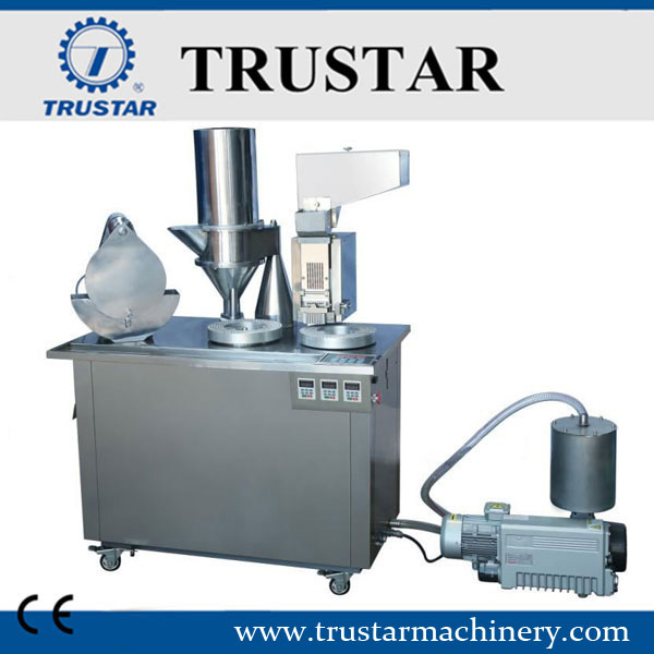 Esta máquina tiene una estación de alimentación de cápsulas vacías independientes, una estación de alimentación de polvo y una estación de cierre de cápsulas, el proceso medio debe procesarse a mano. La máquina adopta control de velocidad variable.