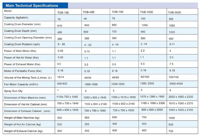 La máquina de recubrimiento de película de alta eficiencia modelo TGB-E serie se usa ampliamente para recubrir varias tabletas, píldoras y dulces con película orgánica, película soluble en agua, película de liberación lenta y controlada y película de azúcar, etc.en las industrias farmacéutica, nutricional, alimentaria y de dulces. Y tiene características tales como alta eficiencia, bajo consumo de energía, fácil de limpiar y operar, y ocupa un área de piso pequeña, etc. La máquina adopta un concepto de diseño avanzado. Tiene una estructura compacta, cumple completamente con el estándar cGMP. Es el equipo de recubrimiento ideal para su elección. También podemos resolver el problema del recubrimiento y proporcionarle las artesanías de recubrimiento (además, también podemos suministrarle la máquina de recubrimiento no perforada)