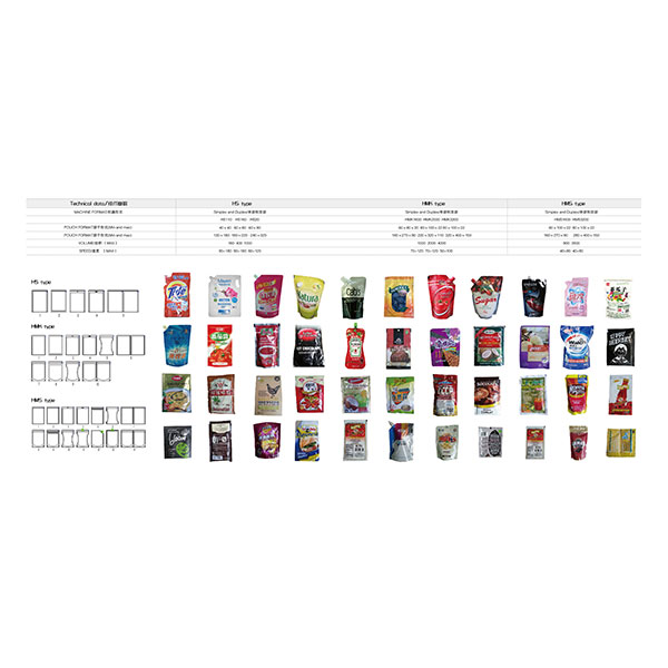 Estos modelos están fabricando sachets pequeños para dosis de producto de pequeño tamaño, son máquinas muy versátiles que pueden producir sachets individuales, pudiendo también hacer hileras con 3, 4 precintos laterales y pack DOY con o sin pico. Los sellos se pueden personalizar con varios patrones de sellos.
