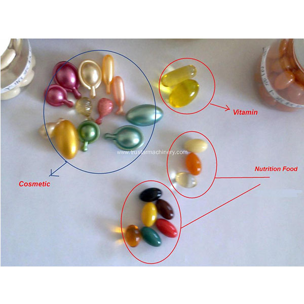 Todo el conjunto de la línea de producción es simple y eficiente con poco espacio. Incluye una máquina principal, un sistema de control, un sistema de refrigeración por agua, un sistema de ahorro de aceite lubricante, un secador, un juego de moldes y un reactor de gelatina auxiliar HJG100-I. Todos los materiales para el conjunto completo del equipo están bien seleccionados para cumplir con el requisito de GMP, hacerlo aplicable a las industrias médica, nutricional, alimentaria y cosmética.