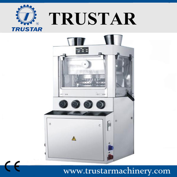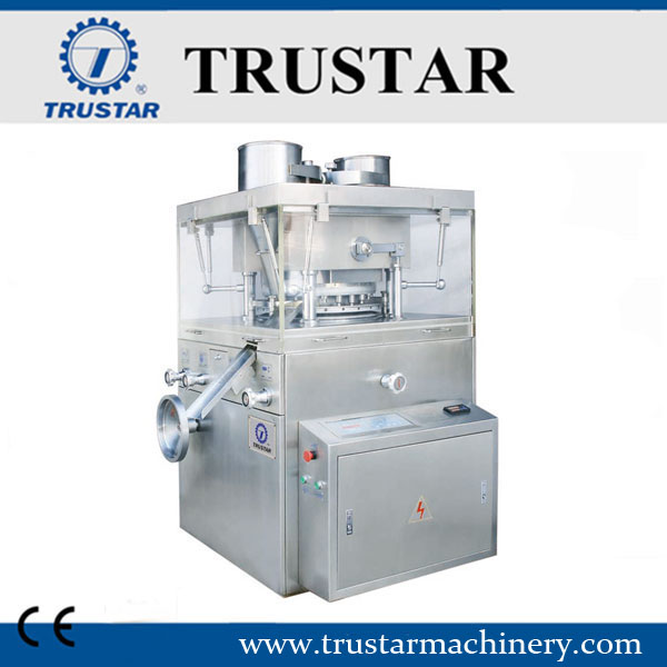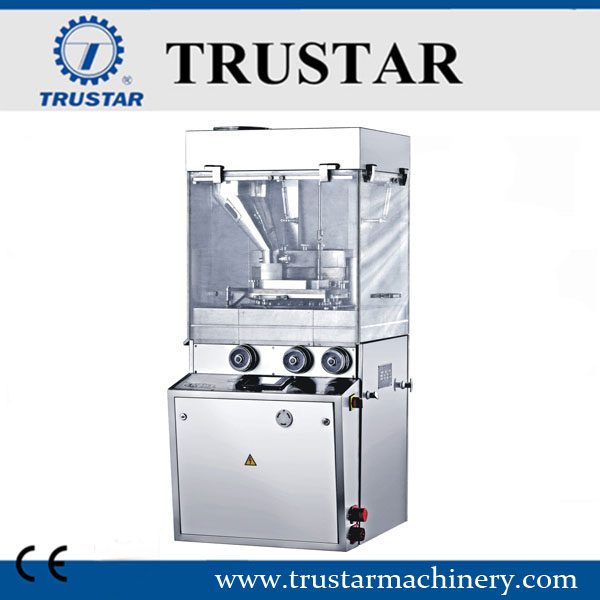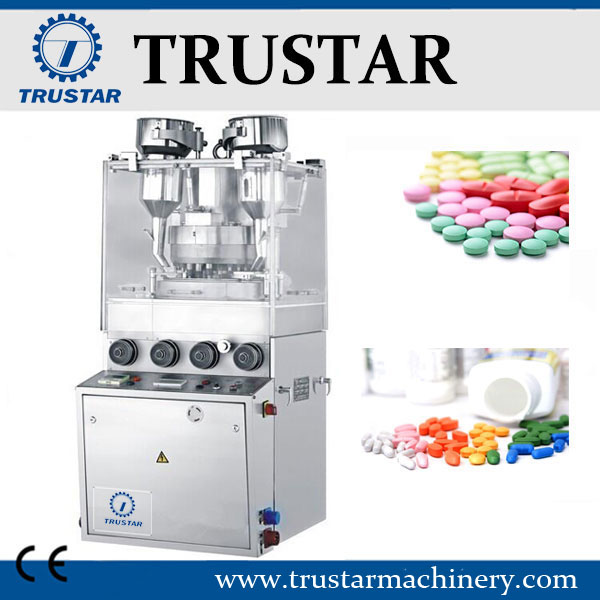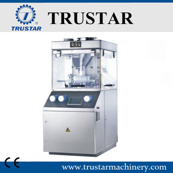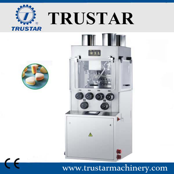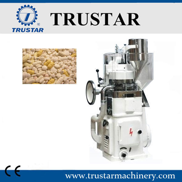 La máquina es una prensa de tabletas rotatoria de un solo lado que puede presionar material granular en tabletas de forma redonda, tabletas irregulares o tabletas grabadas por las dos caras.